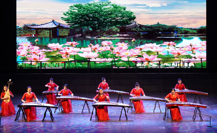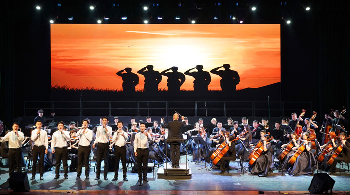 演出在欢快热烈的器乐合奏《春节序曲》中拉开帷幕。古筝、琵琶、电子管风琴重奏《我的祖国》抒发了志愿军战士对祖国、对家乡的无限热爱之情和英雄主义的气概。二胡与马头琴合奏《奔腾》,将人们带入了辽阔无垠的草原,淋漓尽致地表现了草原民族的热情奔放。由木卡姆演唱专业学生演唱、器乐小乐队伴奏的《拉克木卡姆》选段,旋律优美,节奏多变。声乐演唱《解放的时代》、《红旗飘飘》讴歌了华夏儿女不畏艰险、团结奋战的精神和热爱祖国、奋发向上的主旋律。京剧选段《梨园新蕾》、钢琴协奏曲《黄河第四乐章》、男声表演唱《真像一对亲兄弟》、小提琴齐奏曲《新疆之春》、女声表演唱歌剧《江姐》选段、男女声二重唱《为了谁》等节目一一亮相,为观众们奉上了一场听觉艺术盛宴,赢得了现场的热烈掌声。交响合唱《祖国颂》撼人心魄的演奏,颂赞了新中国所取得的辉煌成就,表达了对祖国的挚爱之情和民族自豪感,为整场演出画上了圆满的句号。