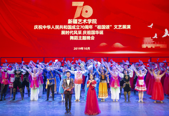 此次舞蹈主题晚会是学校庆祝新中国成立70周年“祖国颂”系列展演活动之一。“祖国颂”系列活动通过舞蹈、美术、音乐、视频等不同艺术形式呈现了新疆人民的生活状态和人文历史,讴歌了70年来,新疆大地在中国共产党领导下发生的深刻变化,反映出新疆民族团结、社会稳定和长治久安的美好景象,展示了新疆艺术学院崇尚学术、兼容并蓄,以弘扬中华文化为己任的优良传统、初心使命、责任担当。