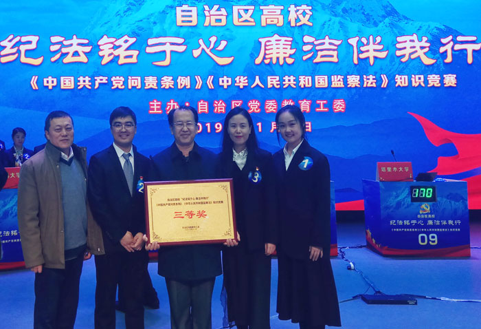11月8日下午,自治区党委教育工委组织区属各高校和石河子大学、塔里木大学等15所高校在新疆农业大学礼堂举办了教育系统“纪法铭于心 廉洁伴我行”知识竞赛。15支代表队经过“必答题”“抢答题”“风险题”等环节的激烈角逐,最终我校代表队获得三等奖的好成绩。