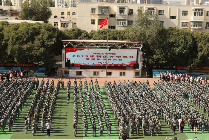 9月9日上午,学校2019级新生开学典礼暨军训动员大会在风雨操场举行。学校党委书记章立新、党委班子成员樊文平、吾甫尔·如苏力、刘洪波、蒋方珍、斯尔哈孜·布兰拜、周达疆以及承训部队官兵代表,处级干部、班主任、辅导员代表及2019级全体新生一起参加了开学典礼。开学典礼由学校党委副书记、院长莫合德尔•亚森主持。