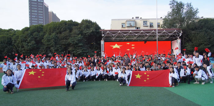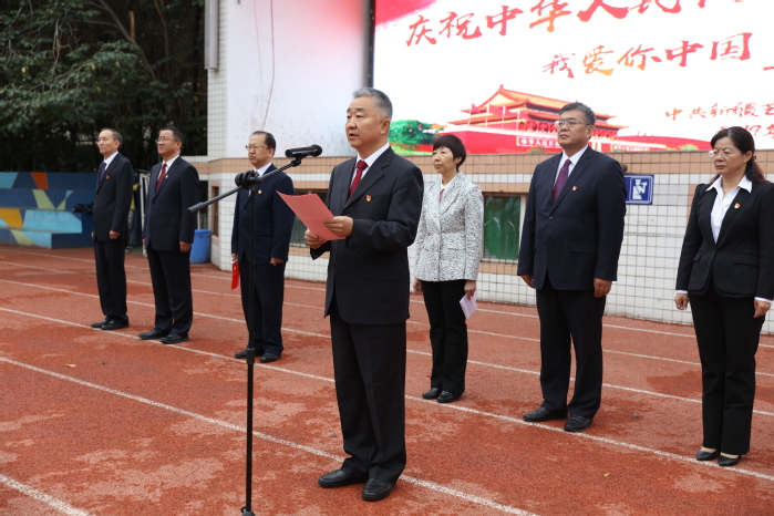伴随着嘹亮的国歌声,鲜艳的五星红旗冉冉升起,迎风飘扬。全体师生庄严肃立,面向国旗行注目礼,齐唱中华人民共和国国歌。学校党委书记章立新在升旗仪式上致辞。