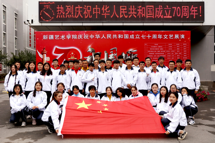 章立新书记在致辞中说:70年来,在中国共产党的领导下,各族人民团结奋斗,砥砺前行,把一个满目苍痍、积贫积弱的旧中国,建设成一个团结稳定、欣欣向荣的社会主义新中国,中国人民和中华民族实现了从站起来到富起来,再到强起来的伟大飞跃,今天的中国比历史上任何时候都更加接近中华民族复兴的伟大目标。在伟大祖国的怀抱里,新疆各族人民团结和睦、生活幸福,像石榴子一样紧紧抱在一起。在伟大祖国的怀抱里,新疆艺术学院历经60多年的发展历程,为党育才,为国育人,桃李芬芳、欣欣向荣,正在朝着“特色鲜明、优势突出、国内知名、面向世界”的高水平综合性艺术大学的目标扬帆远航。他希望广大师生在以习近平同志为核心的党中央的坚强领导下,脚踏实地、奋力拼搏,以梦想为岸、以团结作帆、以奋斗划桨,不忘初心,牢记使命,为实现“两个一百年”奋斗目标、实现中华民族伟大复兴的中国梦再续新篇!