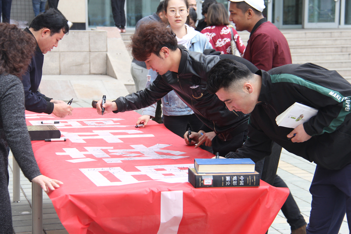 开幕式结束后,学院领导及各系师生代表共同参与“读书周”签名活动。