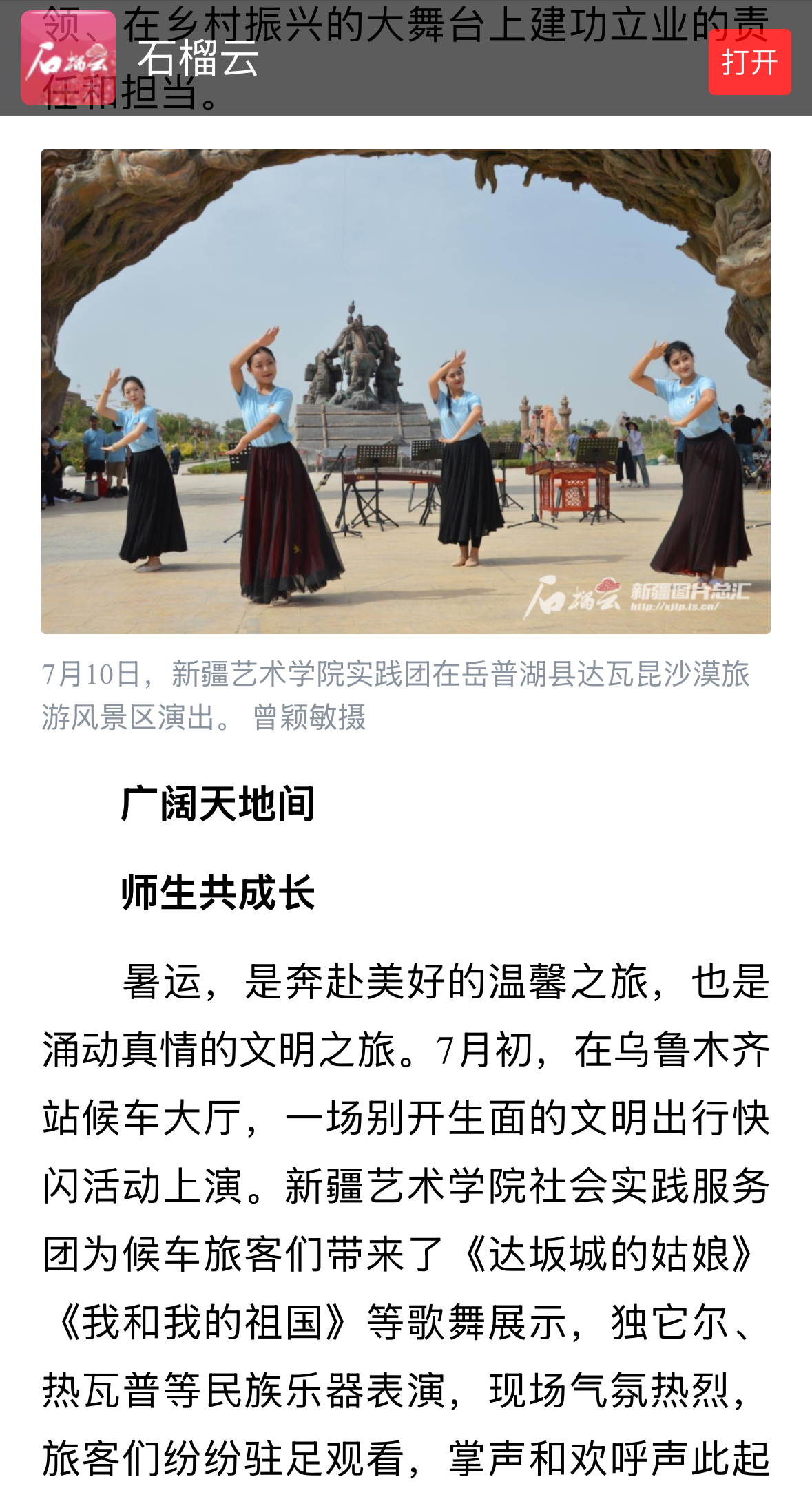 8月27日,石榴云/新疆日报以《新视野丨暑期这堂大思政课 新疆师生上得火热》为题对我校进行报道。