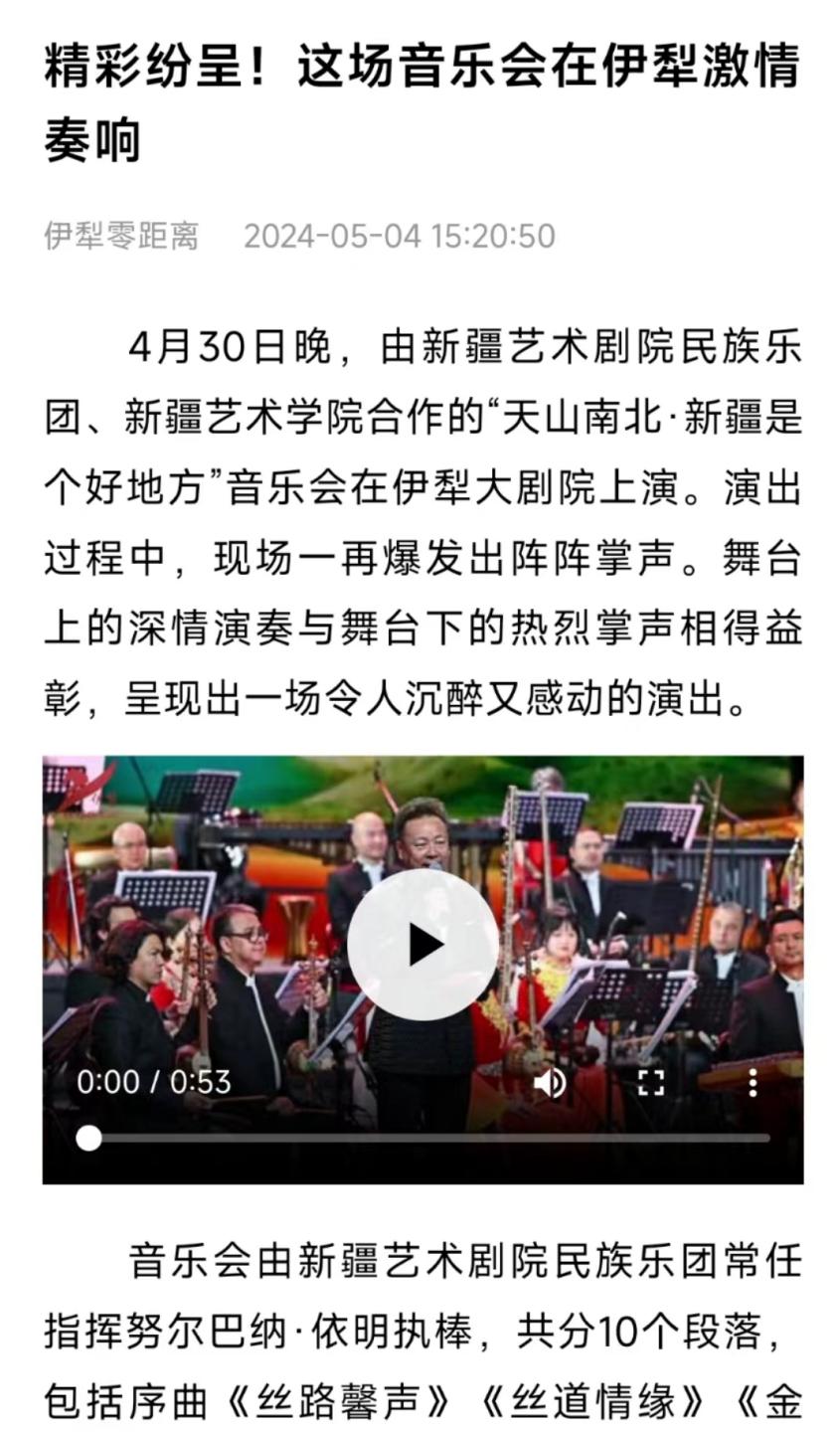 5月4日,石榴云/新疆日报以《精彩纷呈!这场音乐会在伊犁激情奏响》为题对我校进行报道。