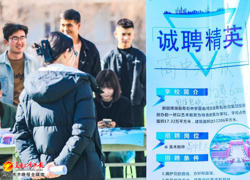 乌鲁木齐晚报讯(全媒体记者王丽娜报道)“今天有很多企业对我这个专业的需求量较大,这让我就业非常有信心。”“未来我想从事专业岗位,这家企业的岗位符合我的择业预期。”“我还是比较关注入职到手的薪资,还关注是否提供住宿”……3月27日下午,天山区人力资源和社会保障局、新疆艺术学院联合举办的以“凝心聚力促就业,奋楫扬帆启新程”为主题的美术设计类专场校园招聘会吸引了500多名学生前来投递简历。