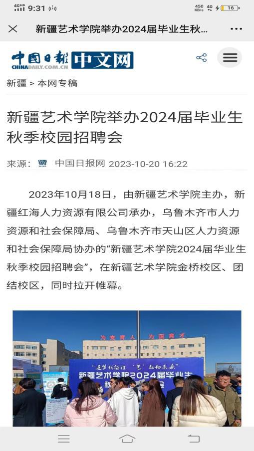 10月18日 中国日报网以《新疆艺术学院举办2024届毕业生秋季校园招聘会》为题对我校进行报道。