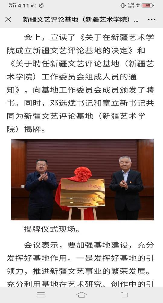 新疆文艺评论基地(新疆艺术学院)成立暨揭牌仪式顺利举行。