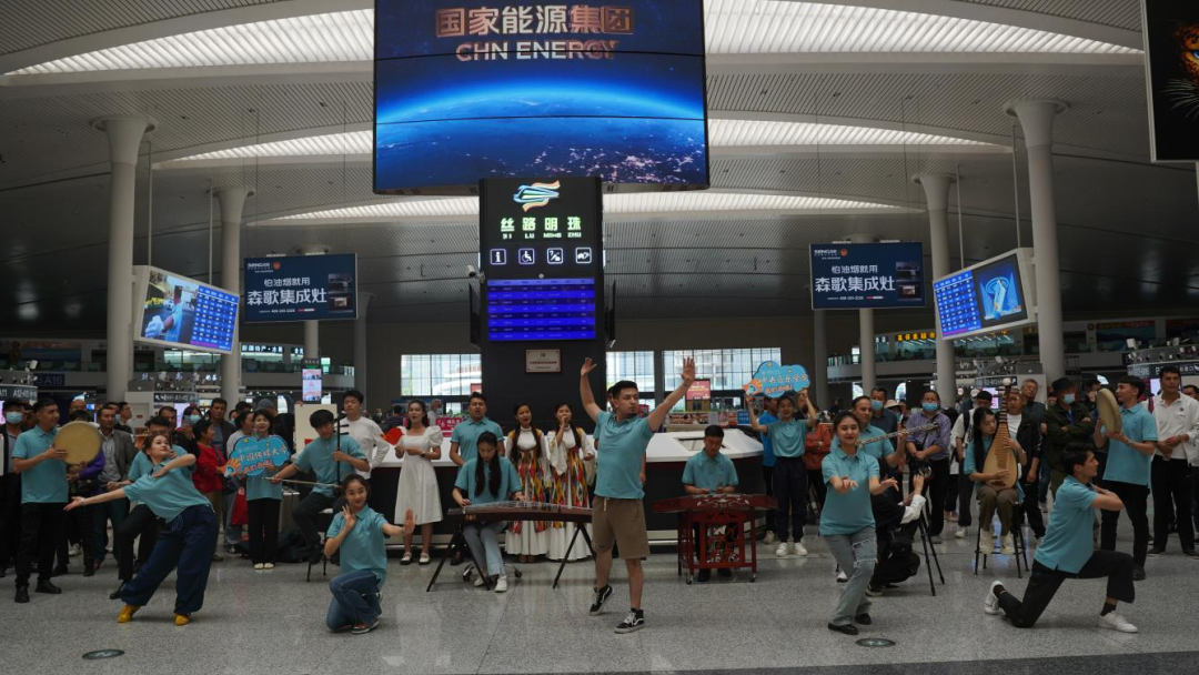 图二 “石榴籽·祖国行”融情实践团高铁站歌舞表演