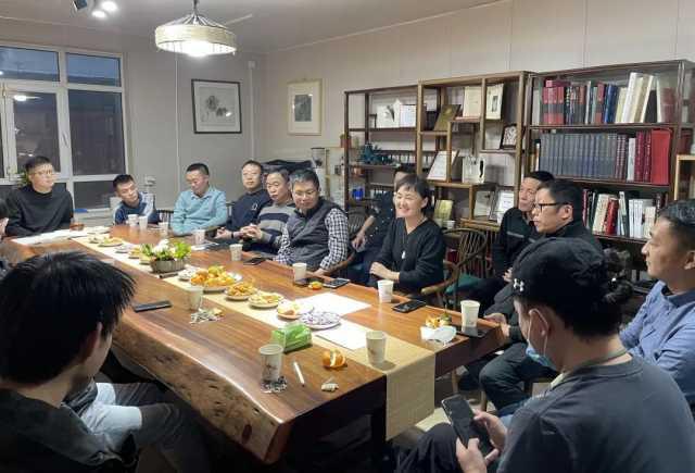 ▲刘巍与学习归来的新疆和田玉雕班学员在乌鲁木齐研讨学习成果