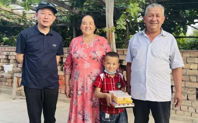 ▲刘巍(左一)与南疆喀什岳普湖县阿其克乡的乡亲