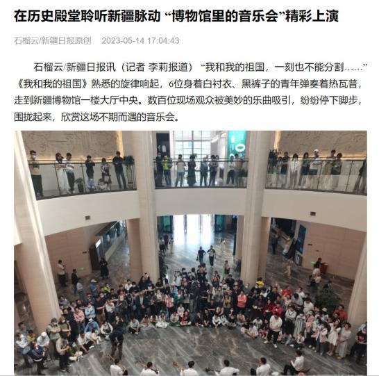 5月14日,石榴云/新疆日报原创以《在历史殿堂聆听新疆脉动 “博物馆里的音乐会”精彩上演》为题对我校进行报道。
