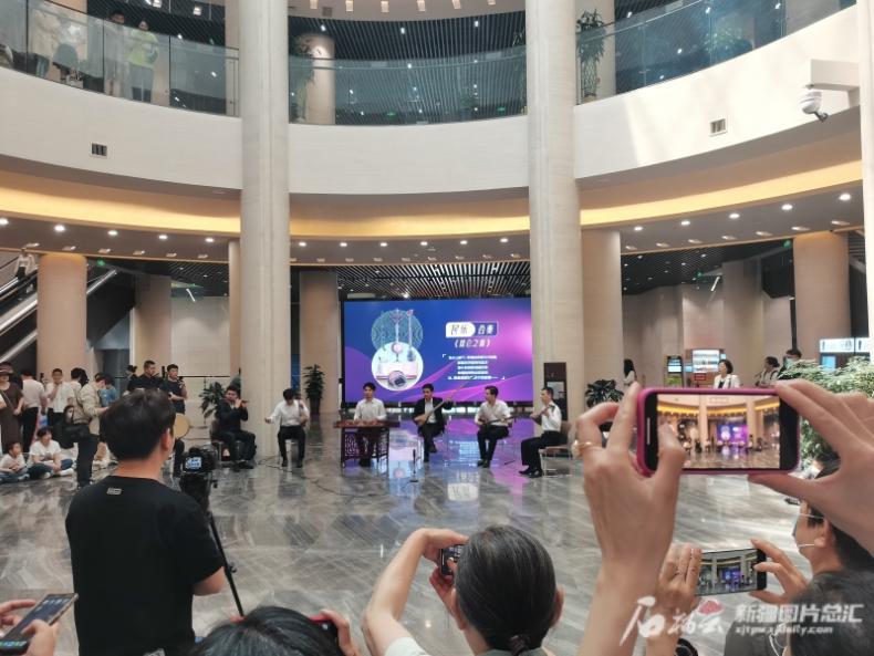 14日,一场精彩的民乐音乐会在新疆博物馆一楼大厅上演,吸引了诸多观众的目光。石榴云/新疆日报记者李莉摄