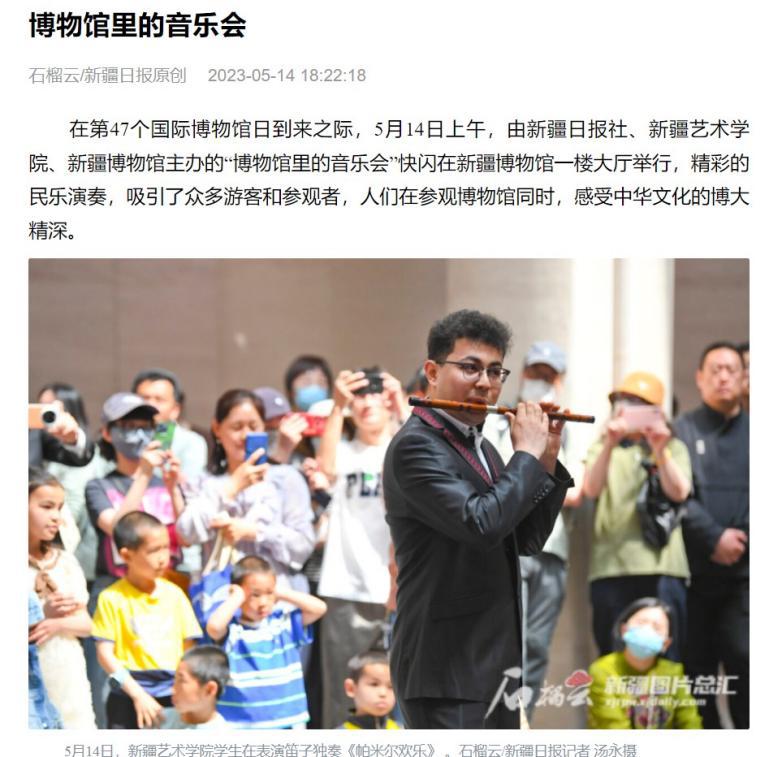 5月14日,石榴云/新疆日报原创以《博物馆里的音乐会》为题对我校进行报道。