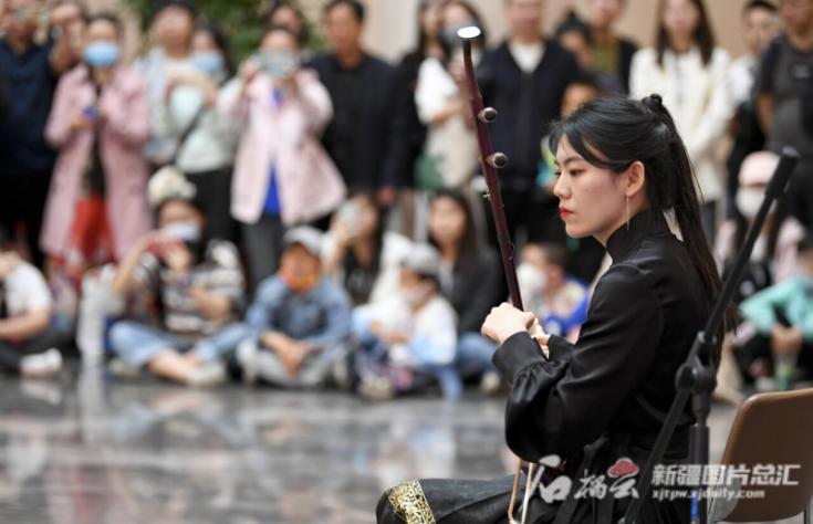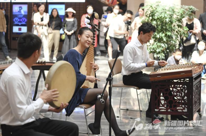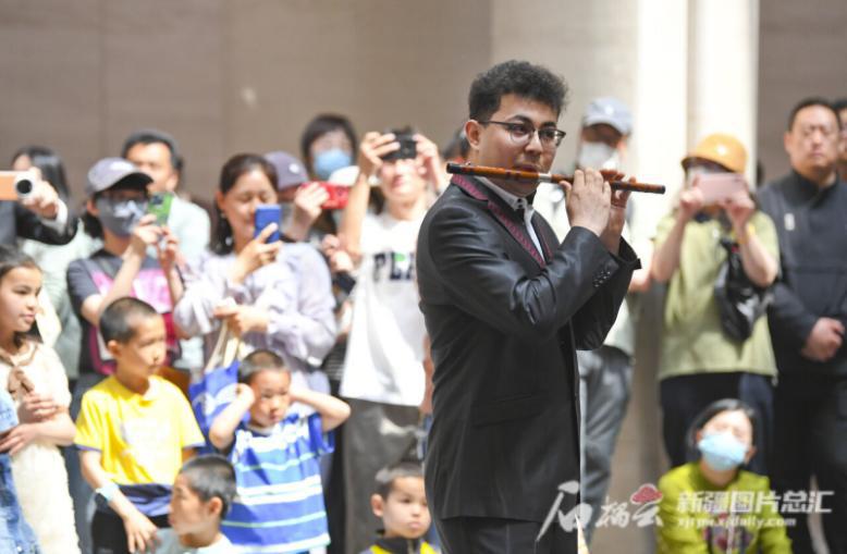 在第47个国际博物馆日到来之际,5月14日上午,由新疆日报社、新疆艺术学院、新疆博物馆主办的“博物馆里的音乐会”快闪在新疆博物馆一楼大厅举行,精彩的民乐演奏,吸引了众多游客和参观者,人们在参观博物馆同时,感受中华文化的博大精深。