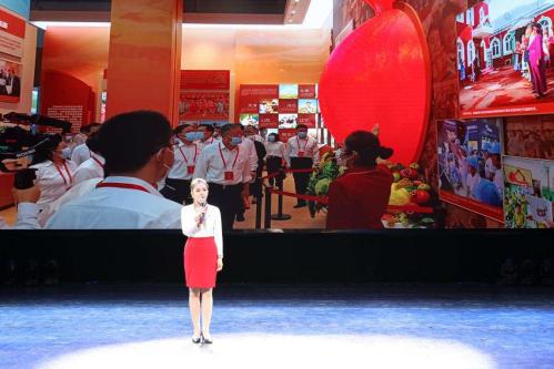 活动中,“奋进新时代主题成就展”讲解团进行了成果汇报。在党的二十大胜利召开之际,备受瞩目的“奋进新时代”主题成就展在北京展览馆隆重开幕,负责新疆单元的8名平均年龄不到22岁的讲解员中,有6名是新疆艺术学院的“小石榴籽”讲解员。在为期五个多月的展期里,她们用生动的语言和饱满的热情开展了近四百场讲解,向参展的党的二十大代表、老同志、老将军、解放军战士、国家机关干部和 128 个国家驻华使节们,讲述了新时代党的治疆方略在新疆的成功实践,精彩展现出党的十八大以来新疆经济社会发展所取得的历史性成就。