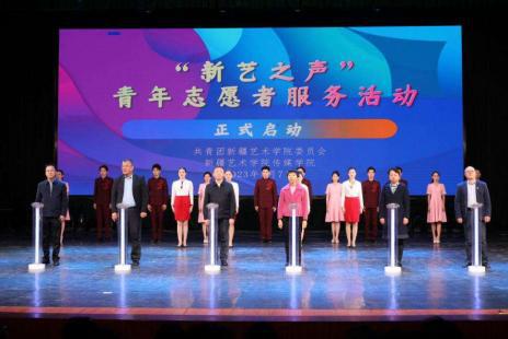 在大家的共同见证下,“新艺之声”青年志愿者服务团宣布成立,服务团的师生们将通过志愿者服务活动,走进学校、走进企业、走进社区、走进乡村,让天山南北更多的“小石榴籽”们加入到这支队伍当中,传递正能量、传播好声音、讲好新疆故事,让“新艺之声”响彻天山南北!