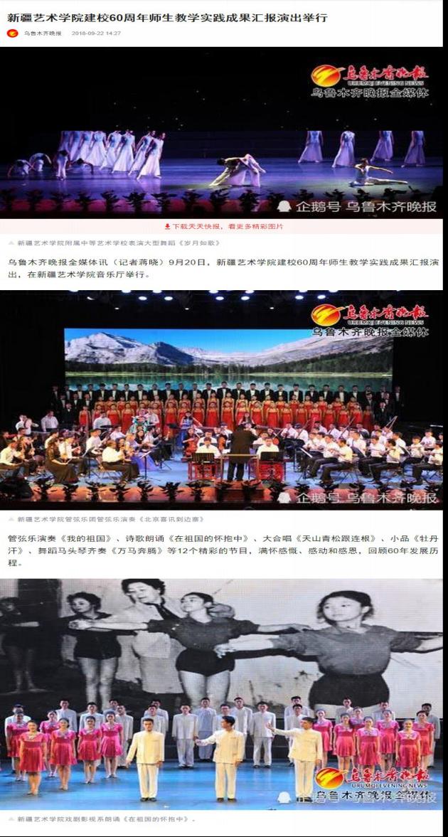 【新闻报道】乌鲁木齐晚报全媒体讯(记者蒋晓)9月20日,新疆艺术学院建校60周年师生教学实践成果汇报演出,在新疆艺术学院音乐厅举行。