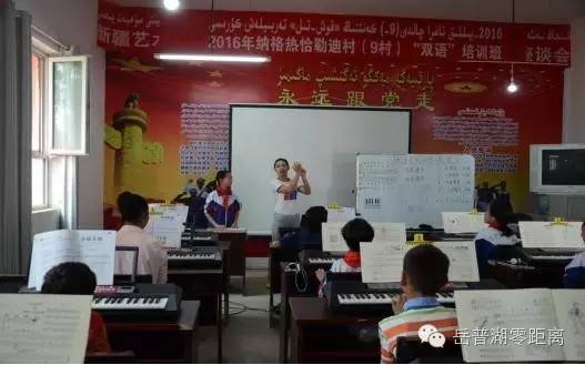 纳格热恰勒迪村的孩子们很幸福,有了岳普湖县阿其克乡第一个村级现代化电子琴教室。这个教室建成于2016年5月,位于村委会大院内,教室里不仅有电子琴,还有工作组从乌鲁木齐购买和社会爱心人士捐赠的钢琴启蒙教材,住村工作组为孩子们购买了英语书、图画书、钢笔字帖、童话故事等各类书籍,供孩子们课外学习阅读。教室每周三下午、周六、周日全天开放,村里的每一个孩子都能够免费使用这些资源和设备,每一个孩子都能学习电子琴、唱歌、学汉语和英语......工作组住村伊始,就关注着村里的教育事业,通过朋友圈传播着村里孩子们奋发向上、努力学习、追求知识的精神风貌,并多次与学院音乐系联系、沟通,最终收到了音乐系师生的爱心捐助,九村小学受捐14架琴。由于教室场地的限制,经过工作组与村小学、村“两委”沟通,决定将九村村委大院作为九村小学课外艺术培训基地开设电子琴教室,工作组年轻教师、上海音乐学院硕士研究生、学院音乐系讲师张赢担任辅导老师,利用周六周日和节假日教孩子们识谱、学琴。