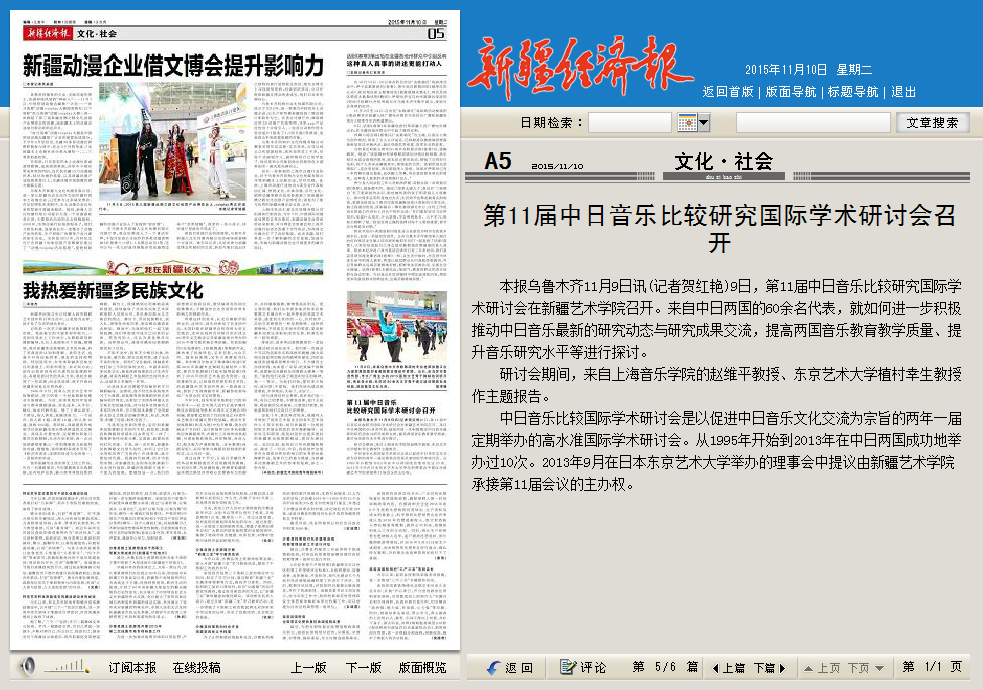 【新闻报道】本报乌鲁木齐11月9日讯(记者贺红艳)9日,第11届中日音乐比较研究国际学术研讨会在新疆艺术学院召开。来自中日两国的60余名代表,就如何进一步积极推动中日音乐最新的研究动态与研究成果交流,提高两国音乐教育教学质量、提升音乐研究水平等进行探讨。