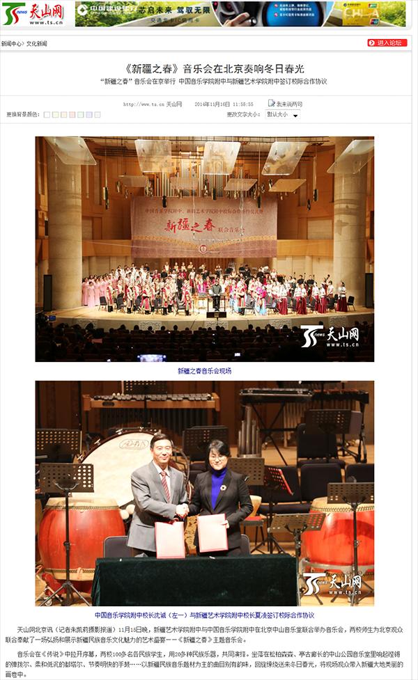 演出前签订了两校校际合作协议,协议规定,双方将在人才培养、科学研究、社会服务等领域加强交流、深化合作,中国音乐学院附中将定期选派音乐专业教师到新疆任课,指导教学工作,在教学、科研、教材建设等予以技术支持,同时为新疆艺术学院附中的教师访问、研修等提供便利。