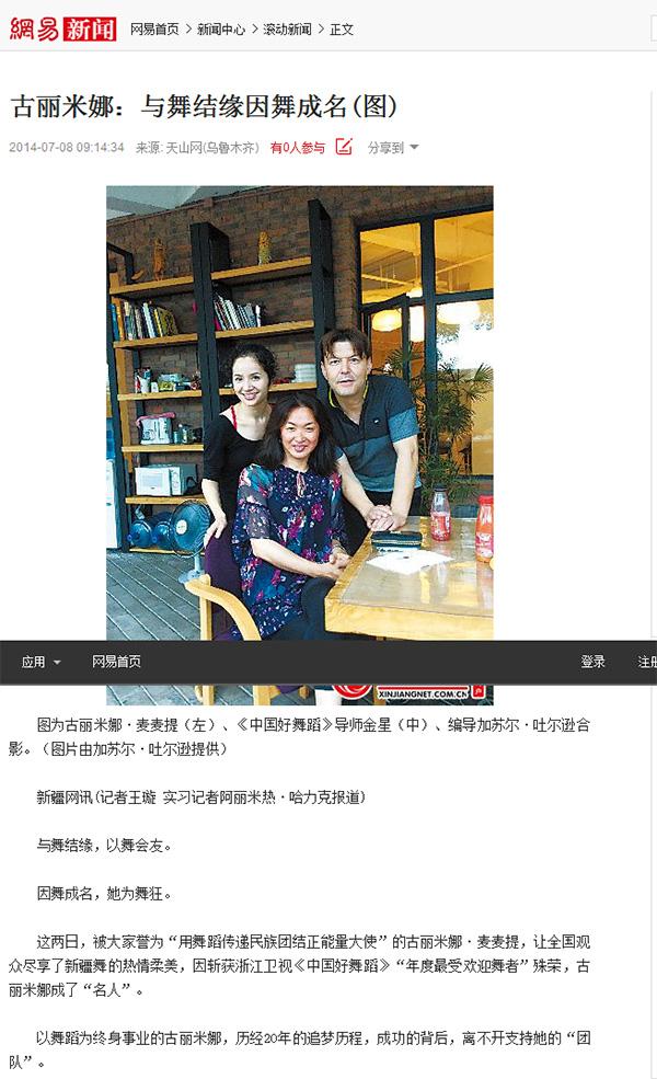 网易网报道新疆舞者古丽米娜《中国好舞蹈》夺冠