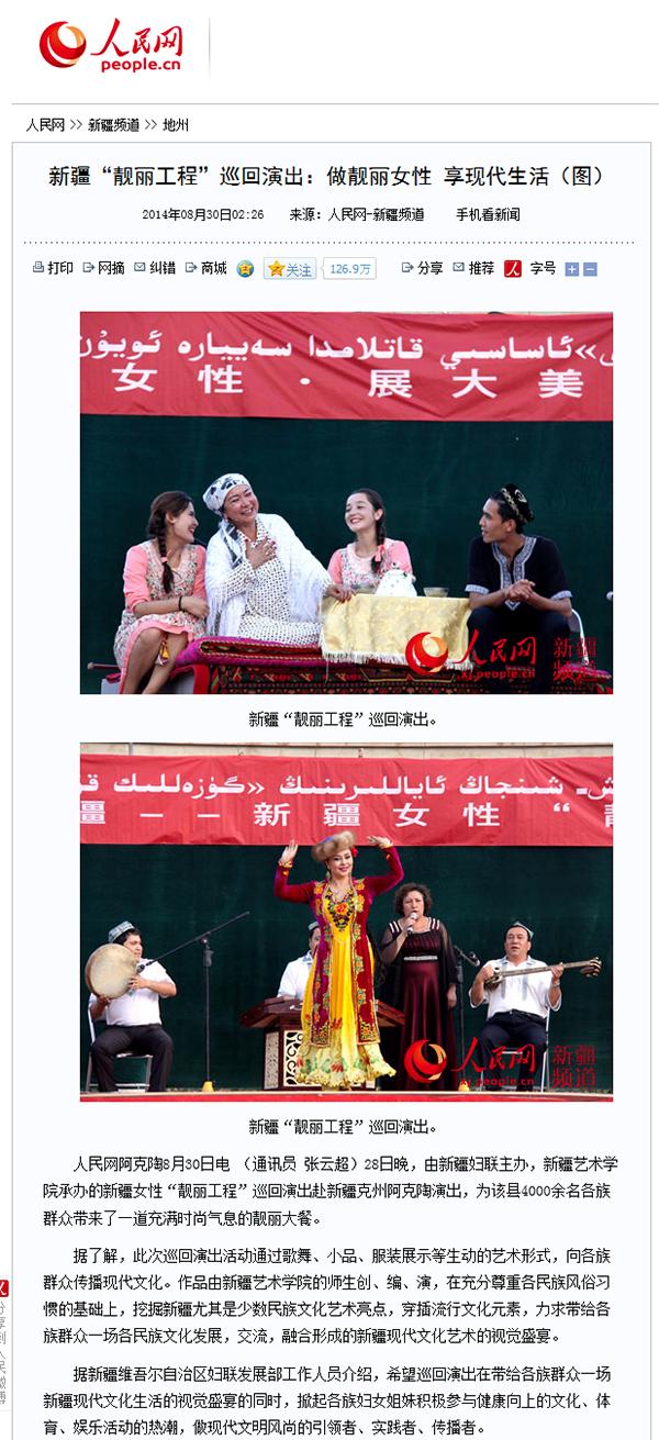 人民网报道新疆“靓丽工程”巡回演出