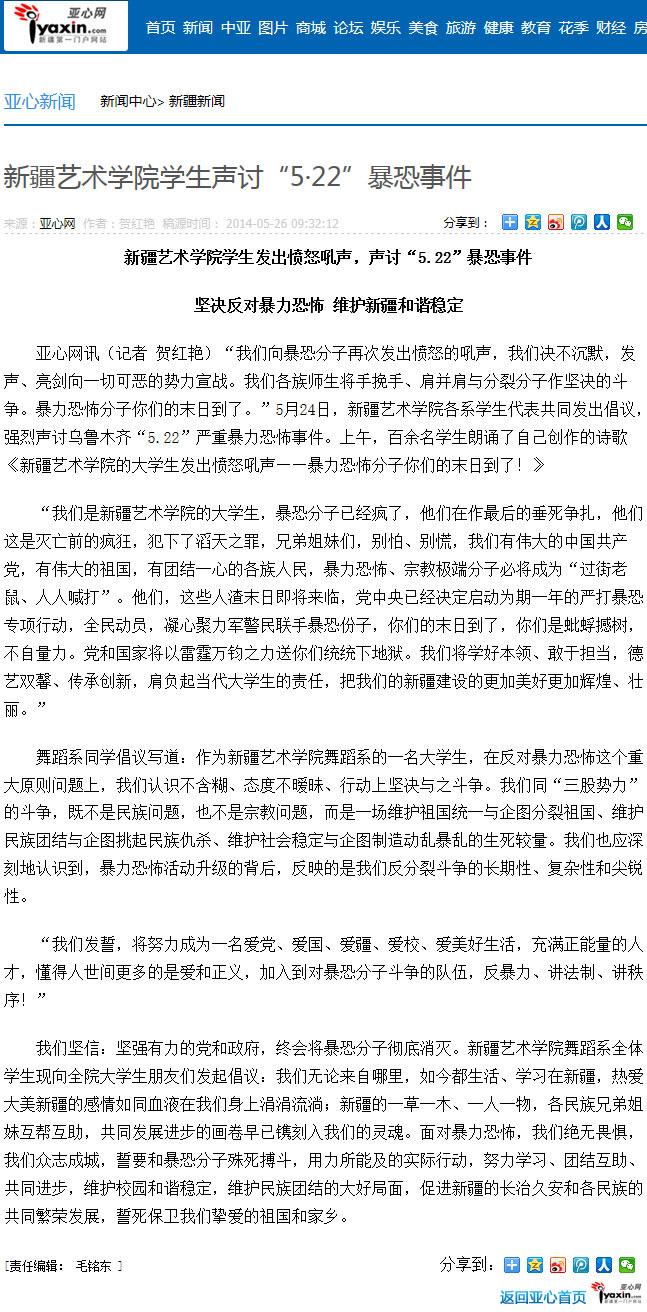 新疆艺术学院学生声讨“5·22”暴恐事件