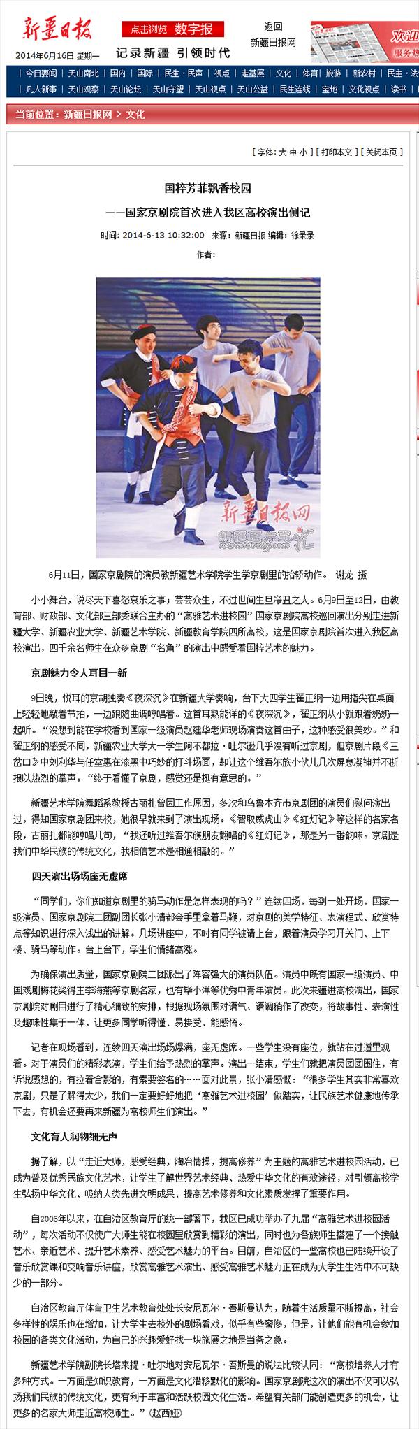 新疆日报网报道国家京剧院进入新疆艺术学院演出