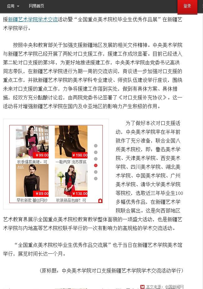 2013年10月21日 网易网报道中央美术学院对口支援新疆艺术学院学术交流活动
