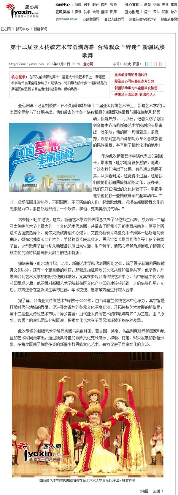 亚心网报道新疆艺术学院应邀参加台湾第十二届亚太传统艺术节
