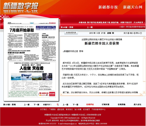新疆都市报 报道全国职业院校技能大赛艺术专业技能大赛