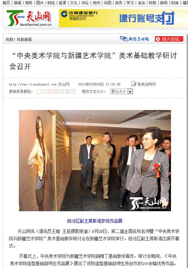 【新闻报道】天山网讯(通讯员王璇 王岳摄影报道)9月29日,第二届全国名校名师暨“中央美术学院与新疆艺术学院”美术基础教学研讨会在新疆艺术学院举行。自治区副主席靳诺出席开幕式。开幕式上,中央美术学院为新疆艺术学院捐赠了基础教学画作。研讨会期间,《中央美术学院造型基础部师生作品展》展出了该院造型基础部师生所创作的100余幅优秀作品。同时还开展了名师学术讲座、写生示范等系列活动。