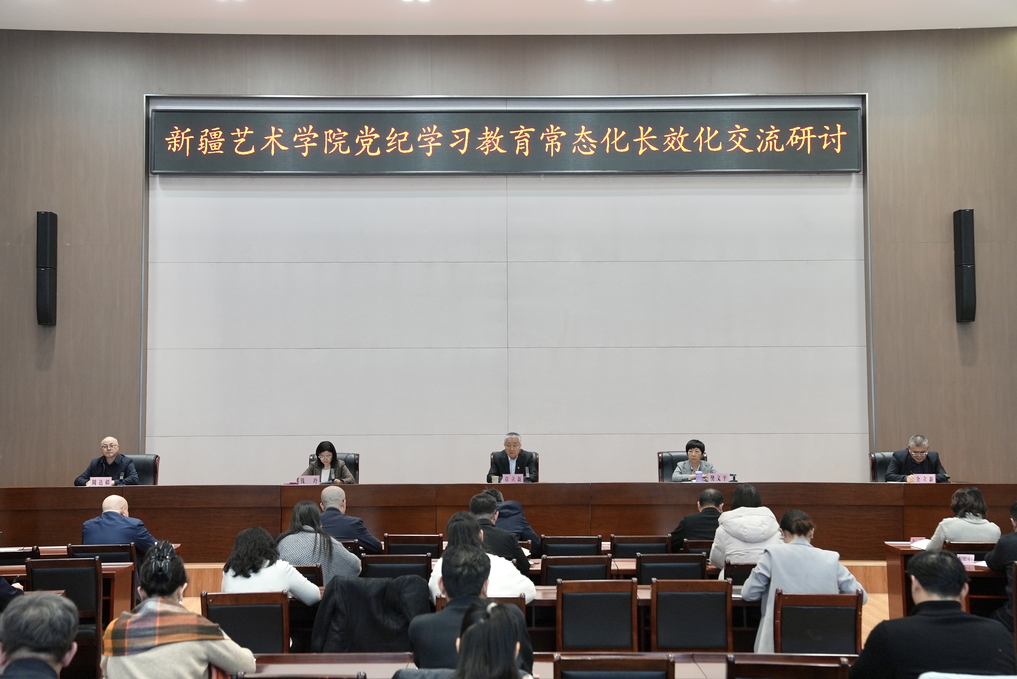 12月3日,我校开展党纪学习教育常态化长效化交流研讨。学校党委书记章立新主持会议并讲话,学校领导班子成员樊文平、钱玲、全立新、木亚赛尔·托乎提、周达疆及全体处级干部参加会议。