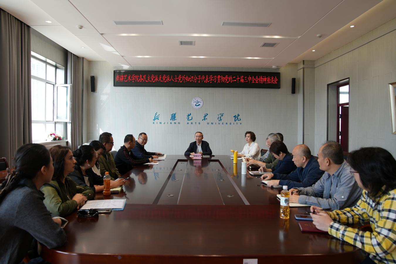 9月13日上午,新疆艺术学院各民主党派、无党派和党外知识分子代表学习贯彻党的二十届三中全会精神座谈会在金桥校区召开。学校党委常委、统战部部长斯尔哈孜·布兰拜出席并主持座谈会,来自学校各民主党派、无党派和党外知识分子代表参加座谈会。