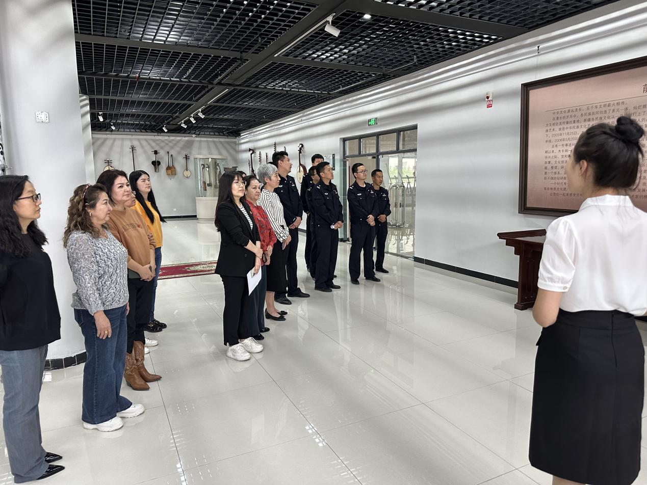 活动中,全体党员参观我校万桐书木卡姆文献馆。展厅内,党员们一边聆听收藏乐谱的心路历程,一边欣赏收藏手稿。这些珍贵的手稿和文字图片,体现出万桐书先生抢救濒临失传的新疆木卡姆艺术的事迹以及国家保护传承新疆木卡姆艺术的成果,对铸牢中华民族共同体意识、增强中华民族凝聚力、构建中华民族共有精神家园具有重要意义。
