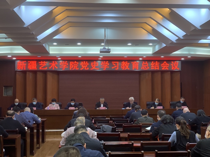 1月17日下午,新疆艺术学院召开党史学习教育总结会议。自治区党史学习教育第十六巡回指导组成员、学校党委领导班子成员、学校处级以上干部、各单位党委(党总支)领导班子成员出席会议。会议传达学习了习近平总书记关于党史学习教育重要讲话指示精神以及自治区党委书记马兴瑞在自治区党史学习教育总结会议上的讲话精神。学校党委书记章立新主持会议并讲话,对新疆艺术学院党史学习教育工作进行总结,对下一阶段推进党史学习教育常态化长效化建设进行部署。