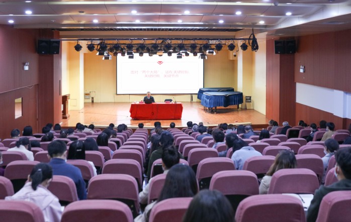 10月21日下午,自治区高校第三次中央新疆工作座谈会精神宣讲报告会在学校学术厅举行。自治区宣讲团成员王学利教授作宣讲报告。学校党委领导班子成员、处级干部及师生代表聆听了报告会。报告会由学校党委副书记樊文平主持。