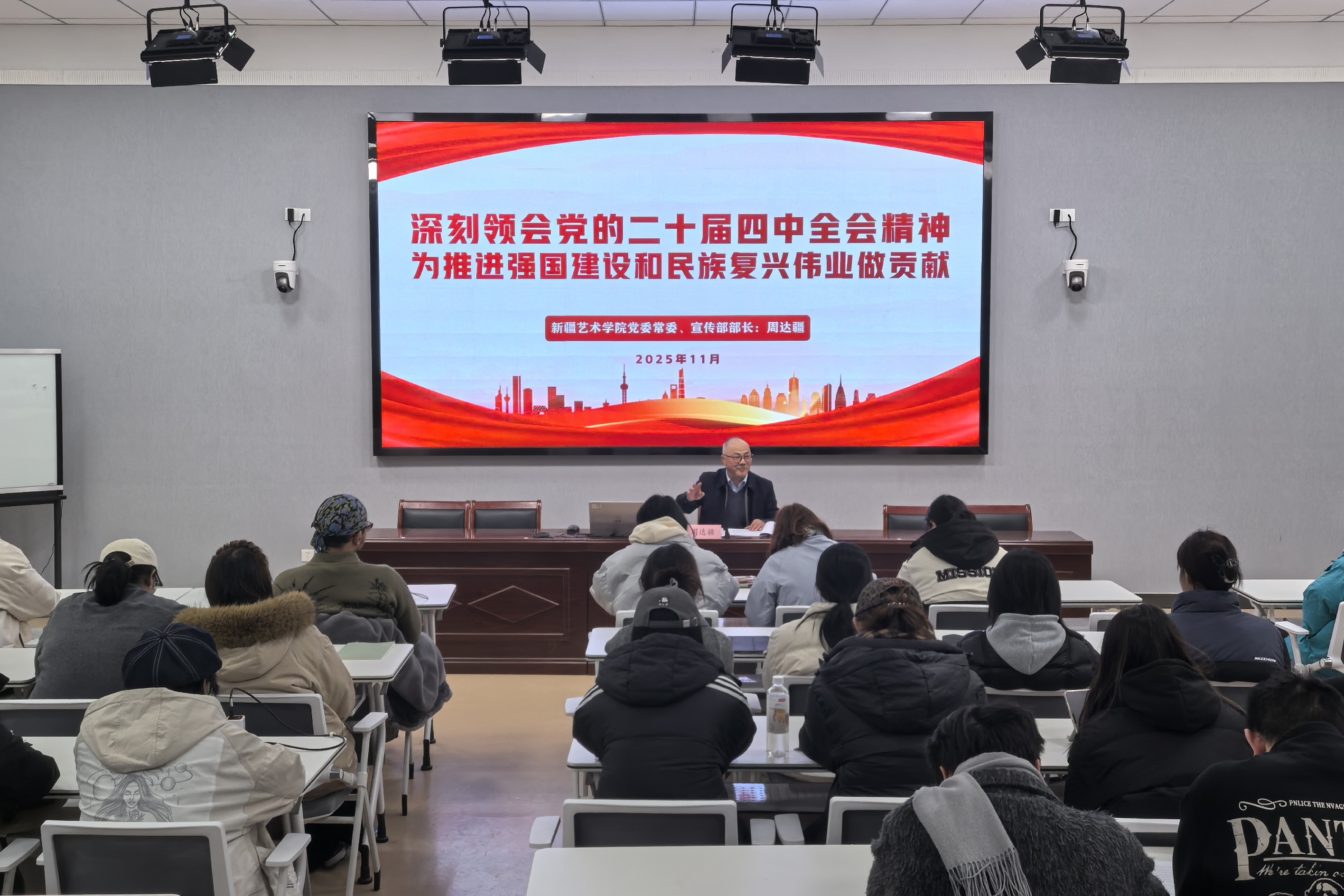 大家在宣讲中强调,全体师生要坚持以习近平新时代中国特色社会主义思想为指导,全面贯彻落实党的二十届四中全会精神,深刻领悟“两个确立”的决定性意义,增强“四个意识”、坚定“四个自信”,做到“两个维护”,扎实推动学校内涵建设高质量发展,为推进新疆高等艺术教育发展和繁荣新疆文化艺术事业做出贡献。