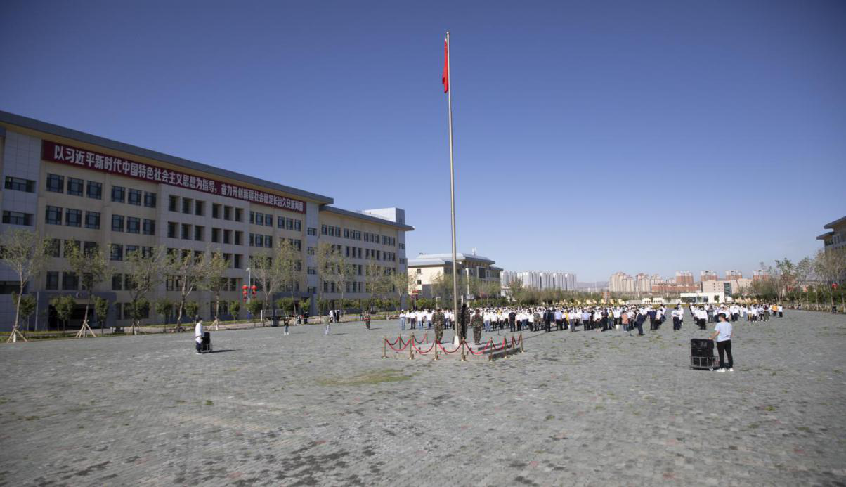 新疆艺术学院附属中专(高职学院)留校师生举行升国旗仪式