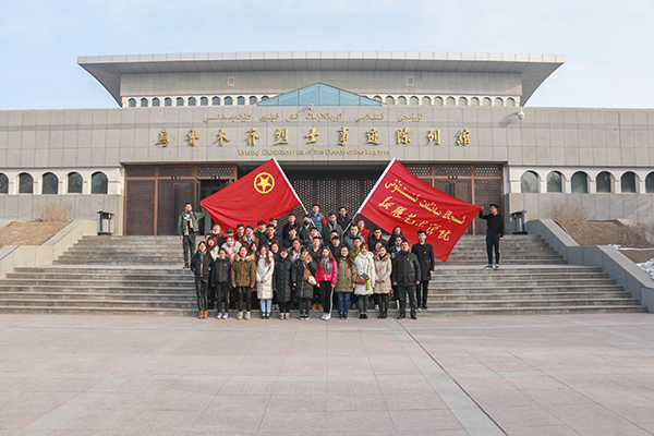 为深入学习宣传贯彻党的十九大精神,学习贯彻习近平新时代中国特色社会主义思想,增强学院各族青年大学生爱党爱国爱疆意识,筑牢信仰之基、把稳思想之舵,凝聚起维护新疆社会稳定和长治久安工作总目标的磅薄力量。切实加强对大学生的爱国主义教育工作。2017年12月9日上午,我院学生处(团委)在乌鲁木齐革命烈士陵园组织开展了“缅怀先烈丰功伟绩,做新时代有为青年”主题团日活动,40名新团员在学生处(团委)老师的带领下,集体高唱国歌,并在团旗下举行了庄严的入团宣誓仪式,向烈士纪念碑敬献了花圈,随后全体师生参观了乌鲁木齐烈士事迹陈列馆。