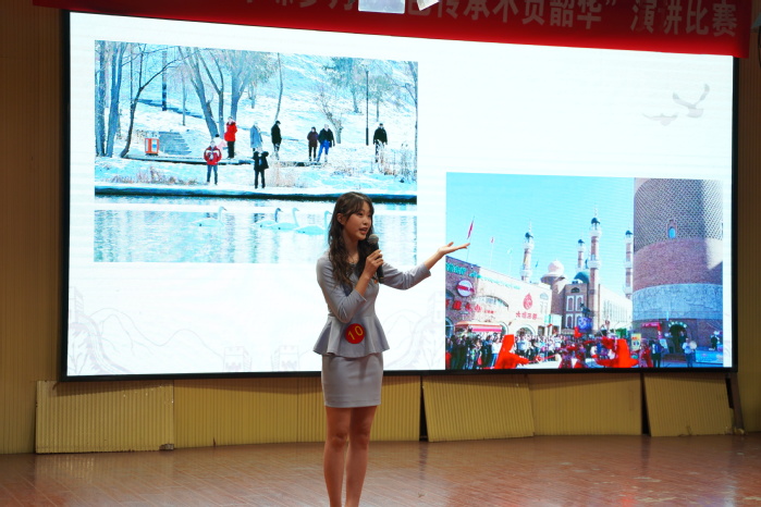 参赛选手附属中等艺术学校艾克旦正在演讲