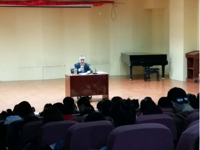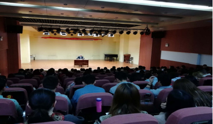 为深入贯彻落实党的十九大精神,增强艺术类大学生对习近平新时代中国特色社会主义思想的理解和把握,根据学院领导干部讲思政课工作的相关文件精神及《毛泽东思想和中国特色社会主义理论体系概论》课程授课计划,2018年5月9日12时,马克思主义学院特邀新疆艺术学院党委书记章立新教授在校本部音乐阶梯教室为2015级舞蹈系、戏剧系本科生讲授了题为《习近平新时代中国特色社会主义思想解读》专题“概论”课。马克思主义学院院长李雪静、教务办主任吐尔逊、概论教研室主任刘玉琼及概论课任课教师曹娜、刘君君老师随堂参加了本次授课活动。