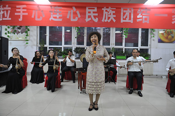发言后开始了联谊会,音乐系的民族小乐队带来了歌曲《天山之春》和《喜洋洋》,舞蹈系带来了精彩的哈萨克族舞蹈《加尔加尔》。活动最后,大家用歌声和舞蹈来表达了自己的喜悦之情和思念之意,将会场气氛推向高潮。