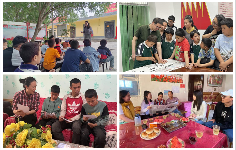 结亲干部给亲戚们带去了慰问品,在农家庭院开展了党的二十大精神、习近平总书记关于乡村振兴工作重要论述等内容的宣讲,大家共同畅谈党的十八大以来,在党中央的坚强领导下,新疆改革发展取得的巨大成就;为进一步传承弘扬中华优秀传统文化,铸牢中华民族共同体意识,开展了“诵读经典 浸润童心”活动,结亲干部与孩子们一起诵读了《观沧海》《悯农》《山亭夏日》等中华经典诗词;在“书法小课堂”中,结亲干部手把手教授孩子们一边书写,一边诵读经典诗词;开展“一叶知恩、杯茶明礼”宣讲活动,结亲干部向大家介绍非物质文化遗产中国传统制茶技艺及相关习俗,在一起观茶、泡茶、品茶过程中,体悟中华礼仪,感受中华优秀传统文化魅力。