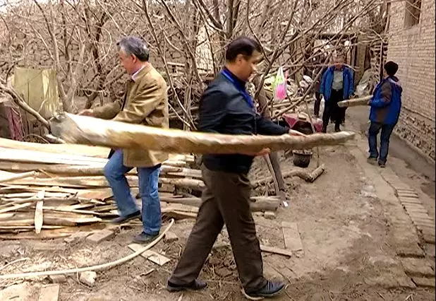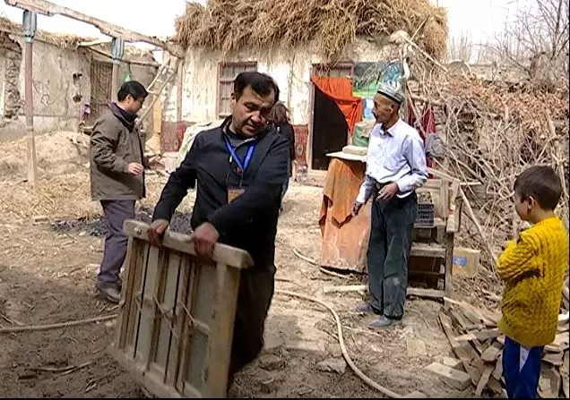 伊拉木·吾斯曼这两天正在忙着搬新家,新疆艺术学院结亲干部毛刚一来到他家里,就投入到劳动当中,拆墙、搬运杂物等干得特别有劲,一边干活,一边毛刚还帮亲戚规划给儿子建新房的事,从房间布局到未来发展规划,毛刚都特别认真。